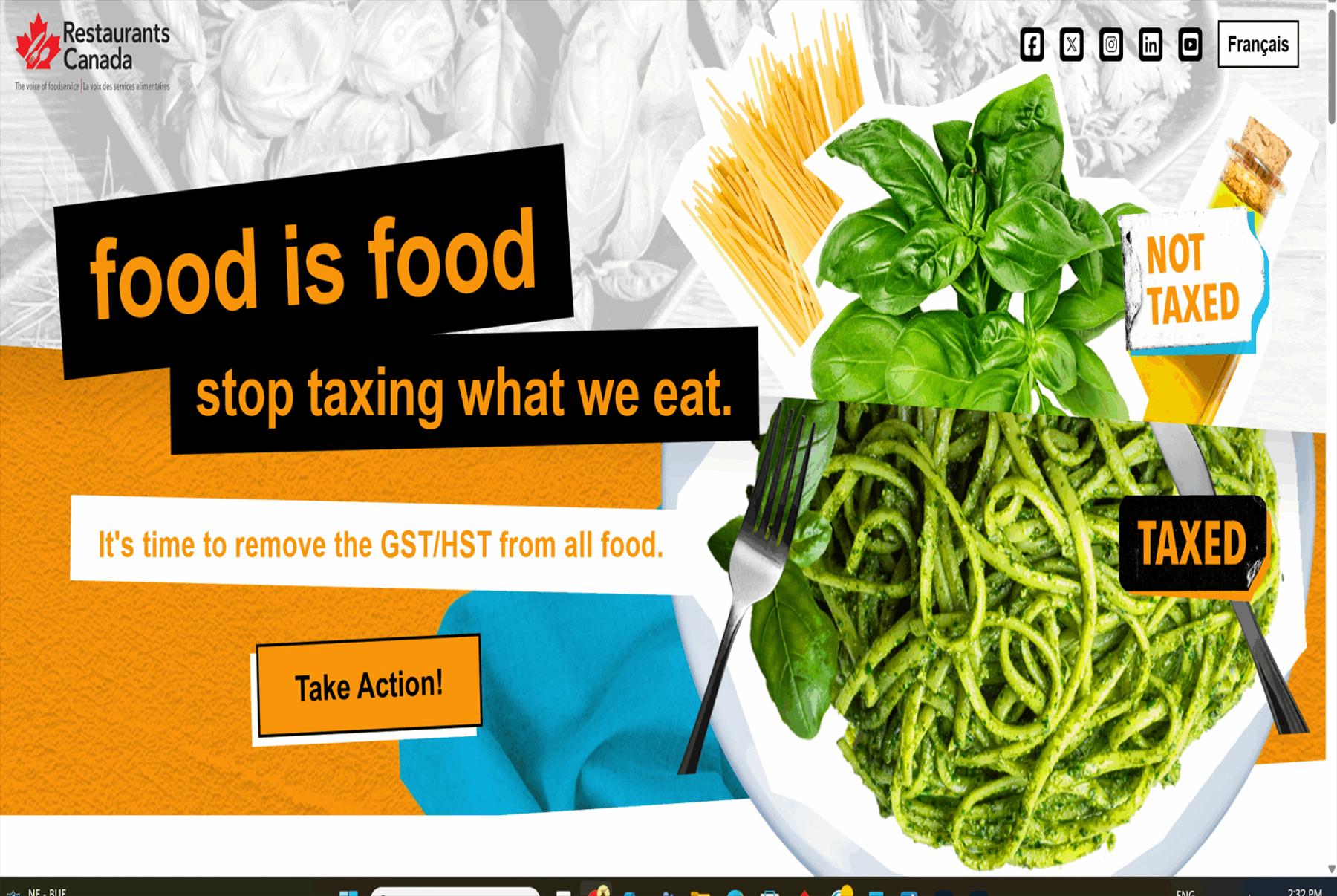 She points out that during the temporary GST holiday earlier this year, Canadians spent 8.6 per cent more on restaurants, indicating that people would go out and order in more often if costs were lower.