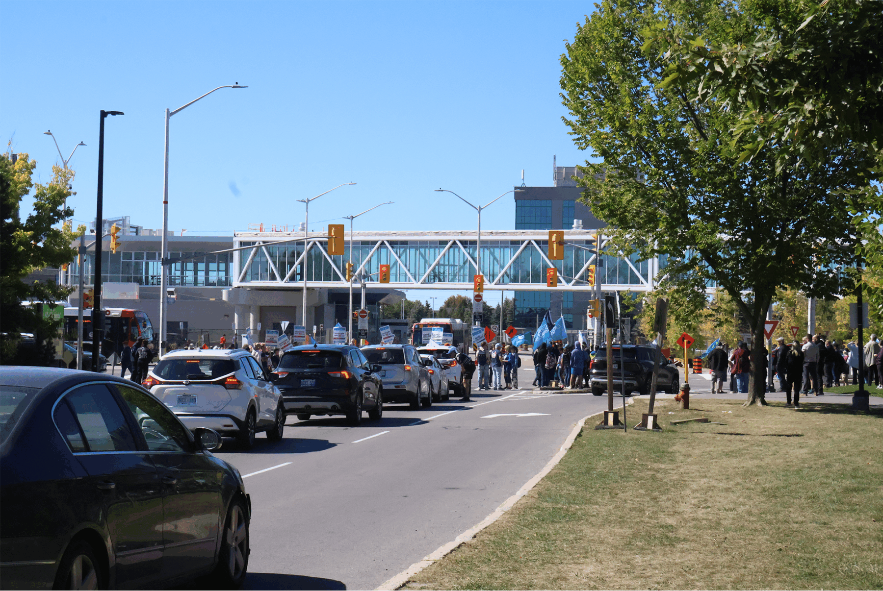 As the clock struck noon on a sunny Friday afternoon, Algonquin College’s striking full-time support staff and colleagues standing in solidarity filled up the Woodroffe Avenue entrance.