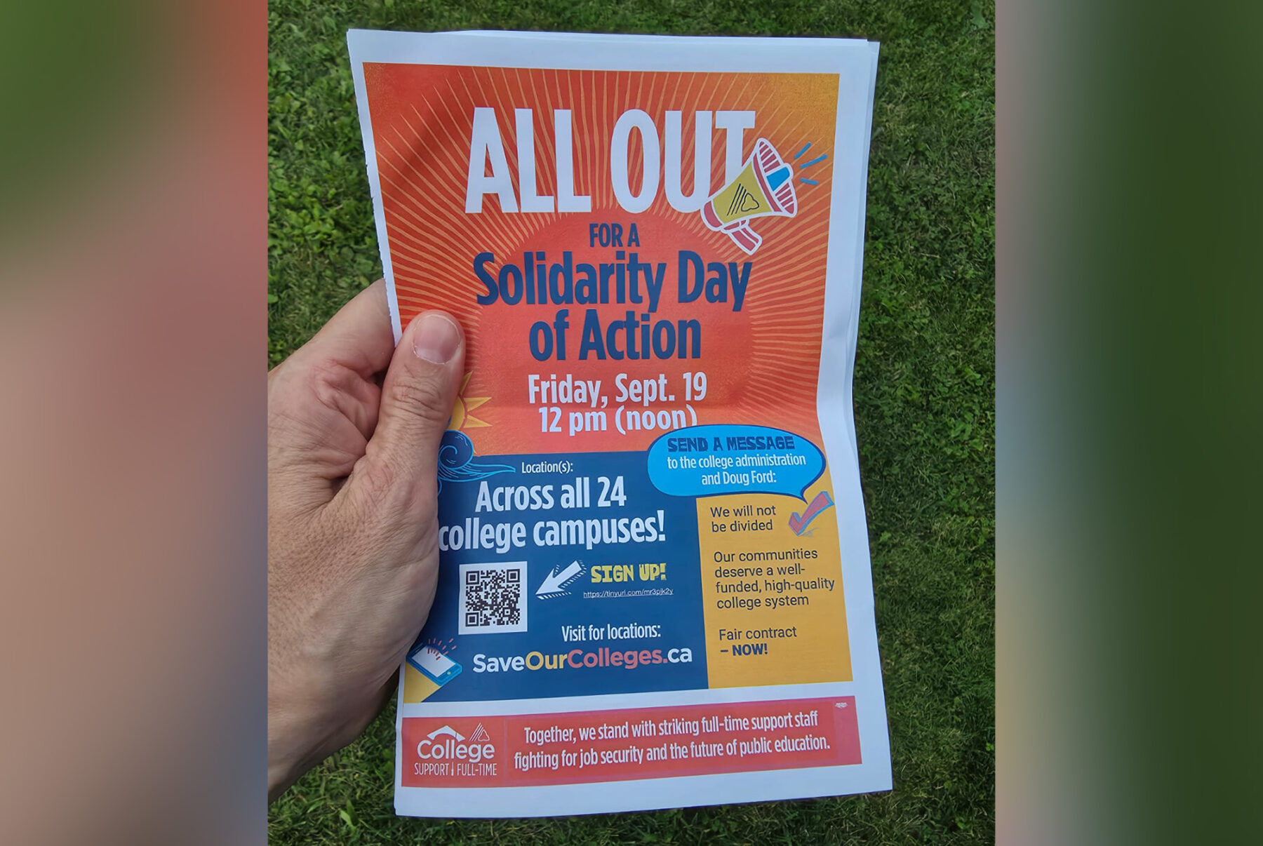 At the Solidarity Day of Action, OPSEU representatives, members and supporters from the wider campus community gathered to advocate for fair contracts and job security protection for full-time support staff across Ontario’s colleges.