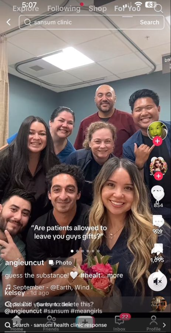 Comments condemning the actions of the healthcare workers and screenshots of the original TikTok post have flooded Sansum Clinic’s Yelp review page, leaving the location with a 1.3-star rating.