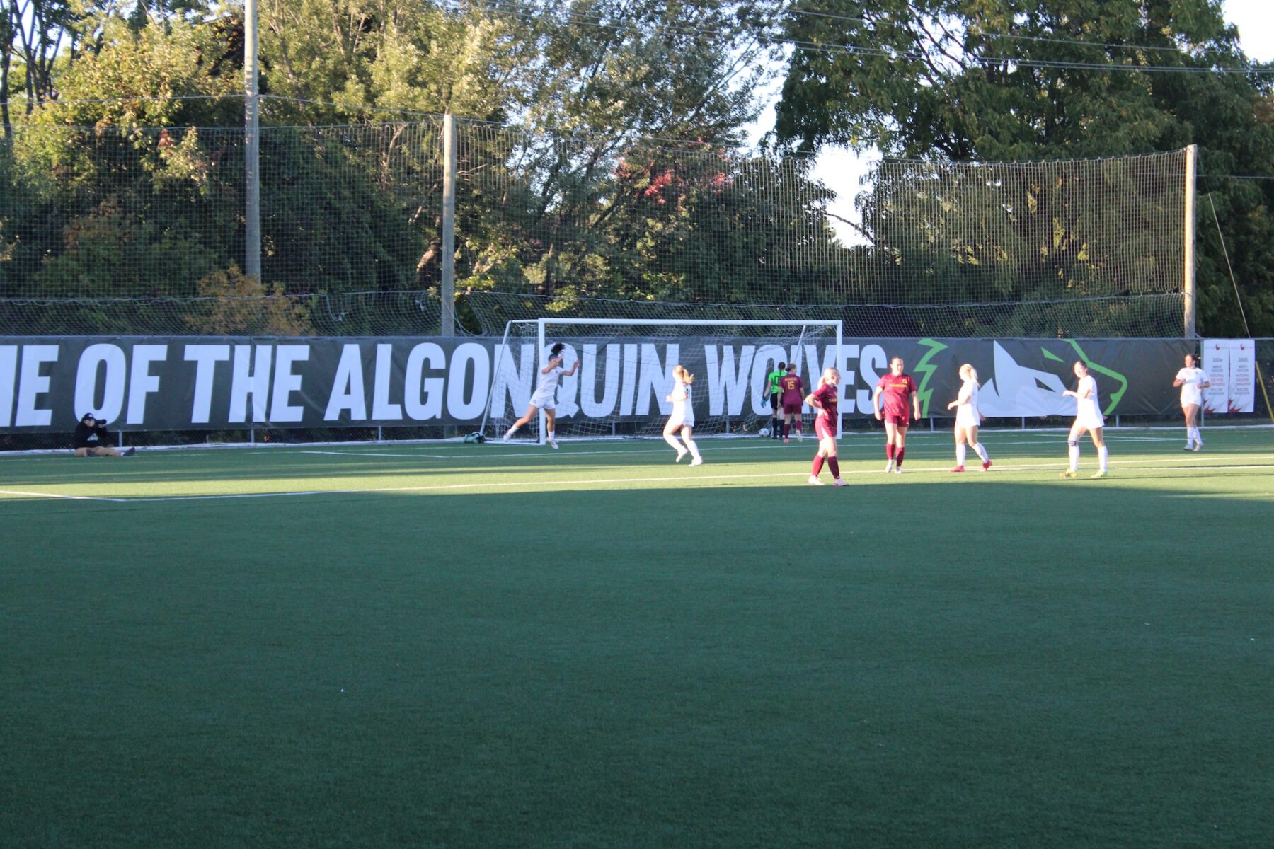 The Algonquin Wolves women’s soccer team kicked off the first game of a weekend doubleheader on Sept. 19 with a 4-1 win against Cambrian College.