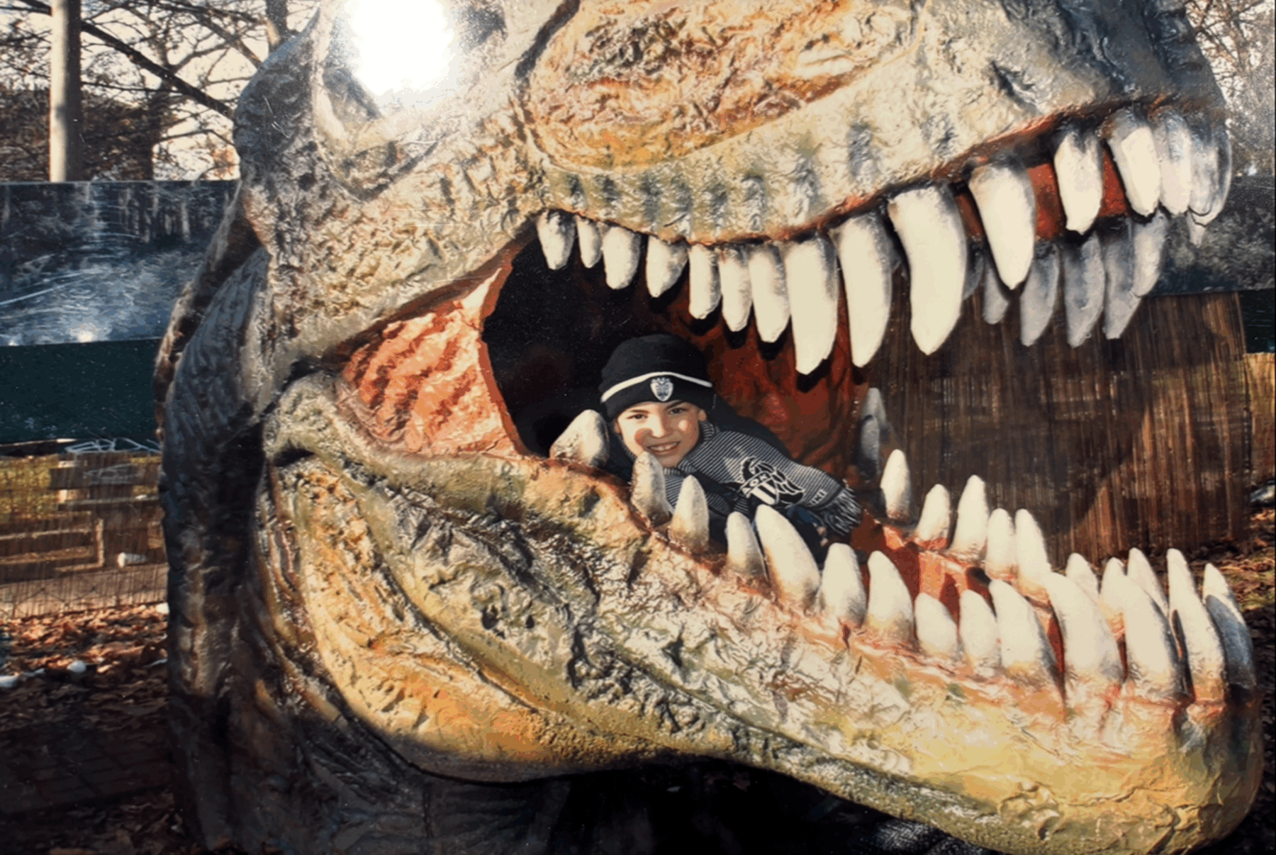 A young Vasileios Tselios wearing a scarf and a beanie of his favourite Greek team, PAOK.