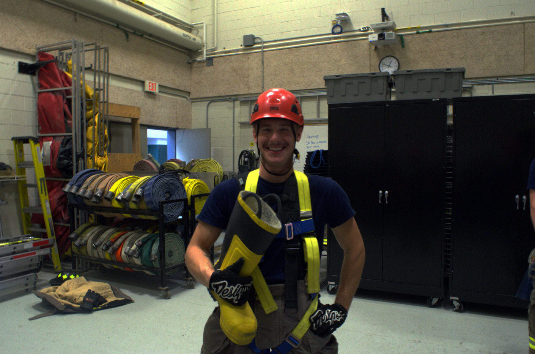 The pre-firefighting students are equally excited to show off their bunker gear to the campus after training vigorously with it in P-building for months.