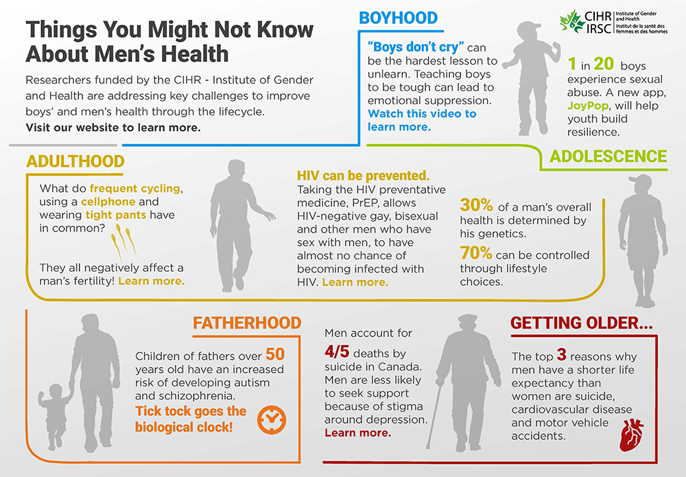 An infographic on campus outlines key facts about men’s health across all stages of life, underscoring Movember’s message about awareness, prevention and early support. Photo credit: Canadian Institutes of Health Research