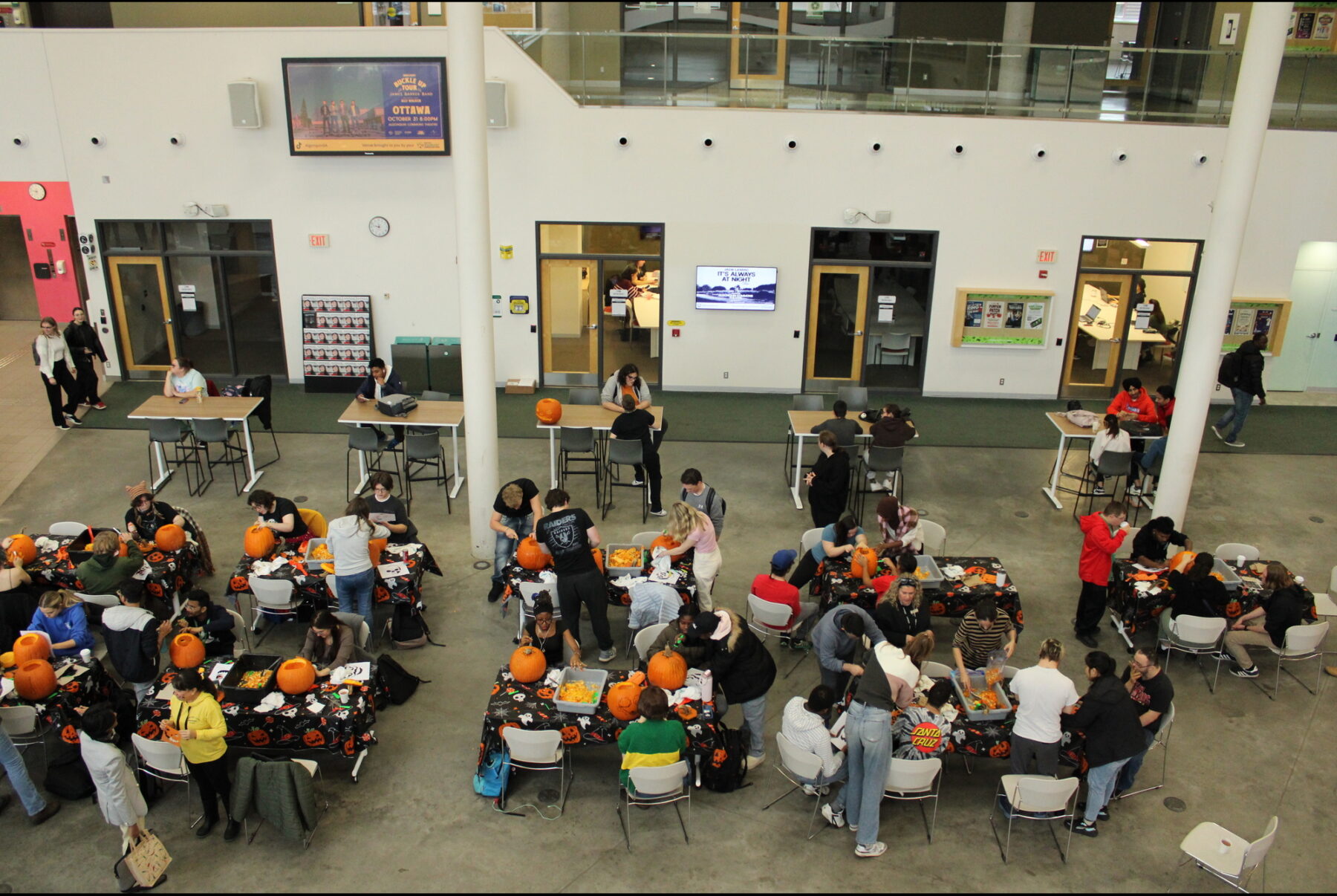 Students bring Halloween indoors with pumpkin carving at Algonquin College