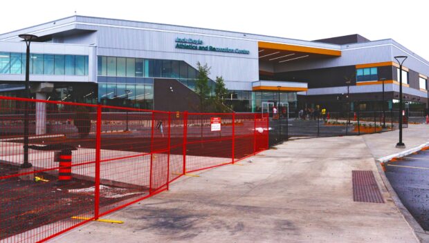 This is The Jack Doyle Athletics and Recreation Centre located at the Algonquin College Woodroffe campus in Ottawa. This picture was taken at 9a.m on Monday, September 27, 2021 – the official opening day.